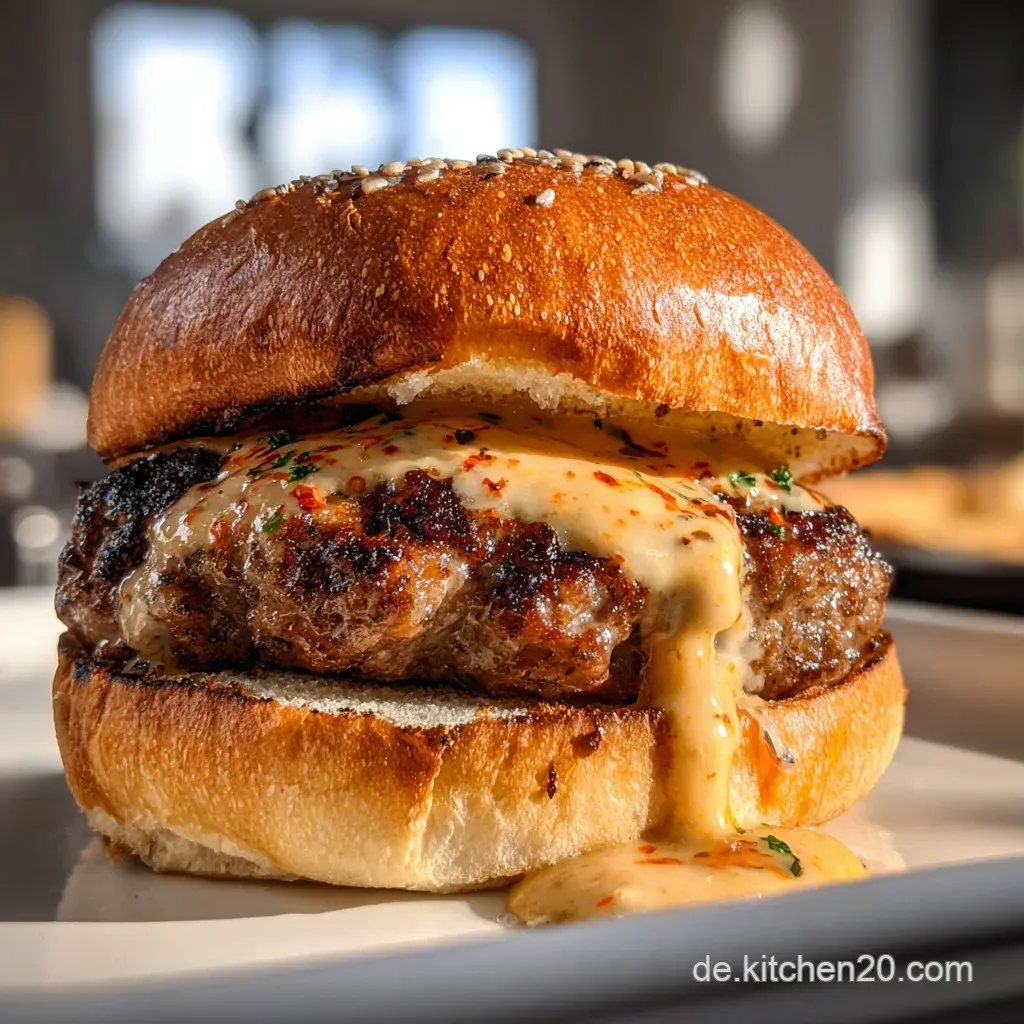 Wenn du die Sauce für eine größere Runde vorbereitest, kannst du sie auch in eine Spritzflasche füllen. So lassen sich präzise Kreise oder Muster auf die Buns ziehen, was sofort nach Profi Küche aussieht.