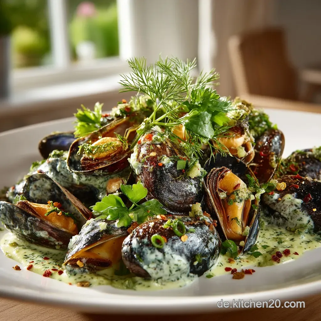 Eine weitere Abwandlung für ein noch reichhaltigeres Geschmackserlebnis ist die Substitution der Sahne durch Crème Fraîche, was eine leicht säuerliche Tiefe in das Muscheln Rezept Italienisch einbringt.