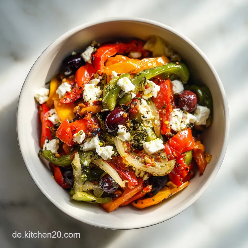 - Temperatur Kontrast: Der kalte, zerbröselte Feta trifft auf das heiße Gemüse und beginnt nur oberflächlich zu schmelzen, was ein spannendes Mundgefühl erzeugt.