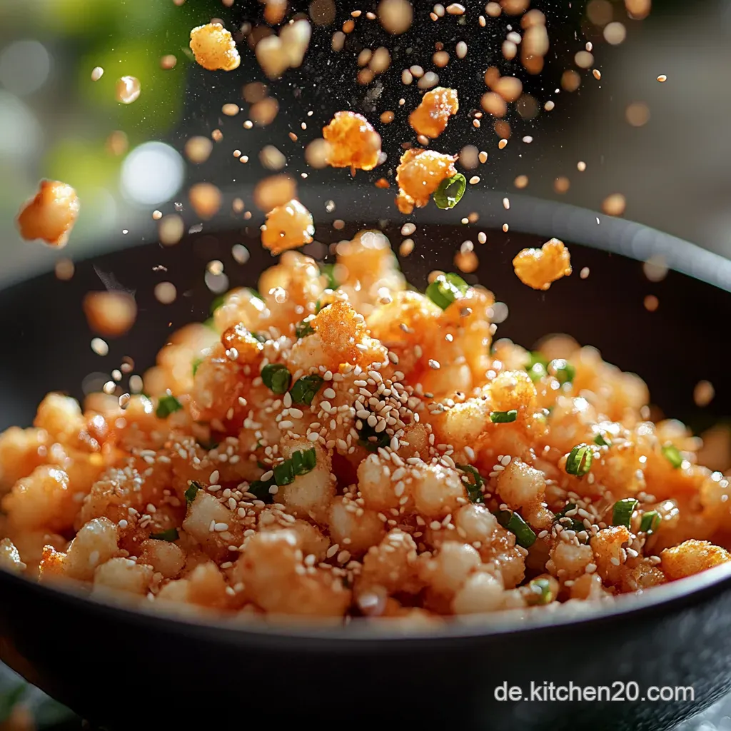 - Anrichten: Mit gerösteten Mandeln und Sesamkörnern bestreuen. Fertig!