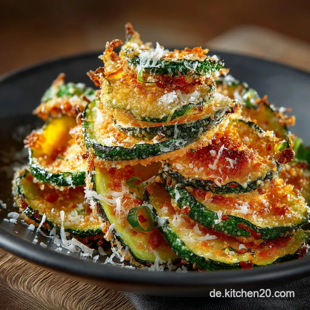 Der Schlüssel zu wirklich knusprigen Chips, insbesondere beim Einsatz von wasserreichen Gemüsesorten wie Zucchini, liegt im rigorosen Feuchtigkeitsentzug. Feuchtigkeit ist der größte Feind der Knusprigkeit. Durch das Einsalzen der Zucchinischeiben vor dem Backen wird Wasser herausgezogen, was uns die nötige Trockenheit verschafft, um den Chips im Ofen eine luftige, krosse Textur zu verleihen. Gepaart mit der langsamen Karamellisierung des Parmesan Chips -Mantels entsteht so ein Crunch-Erlebnis der Extraklasse.