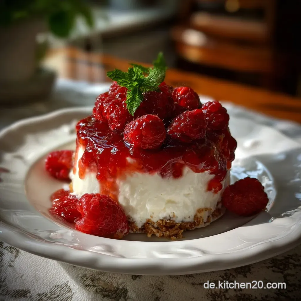 - Frucht Layer. Geben Sie die Hälfte der Himbeeren inklusive des entstandenen Saftes über die Kekse.