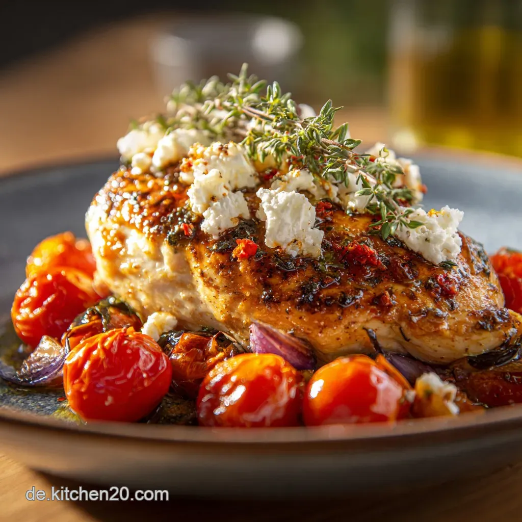Dieser zerbröselt und schmilzt sanfter, wenn die Mediterrane Hähnchenbrust überbacken mit Feta wird, und liefert den charakteristischen Salzkick. Vermeiden Sie kostengünstige Hirtenkäse Alternativen, da diese oft gummiartig werden und nicht ideal schmelzen.