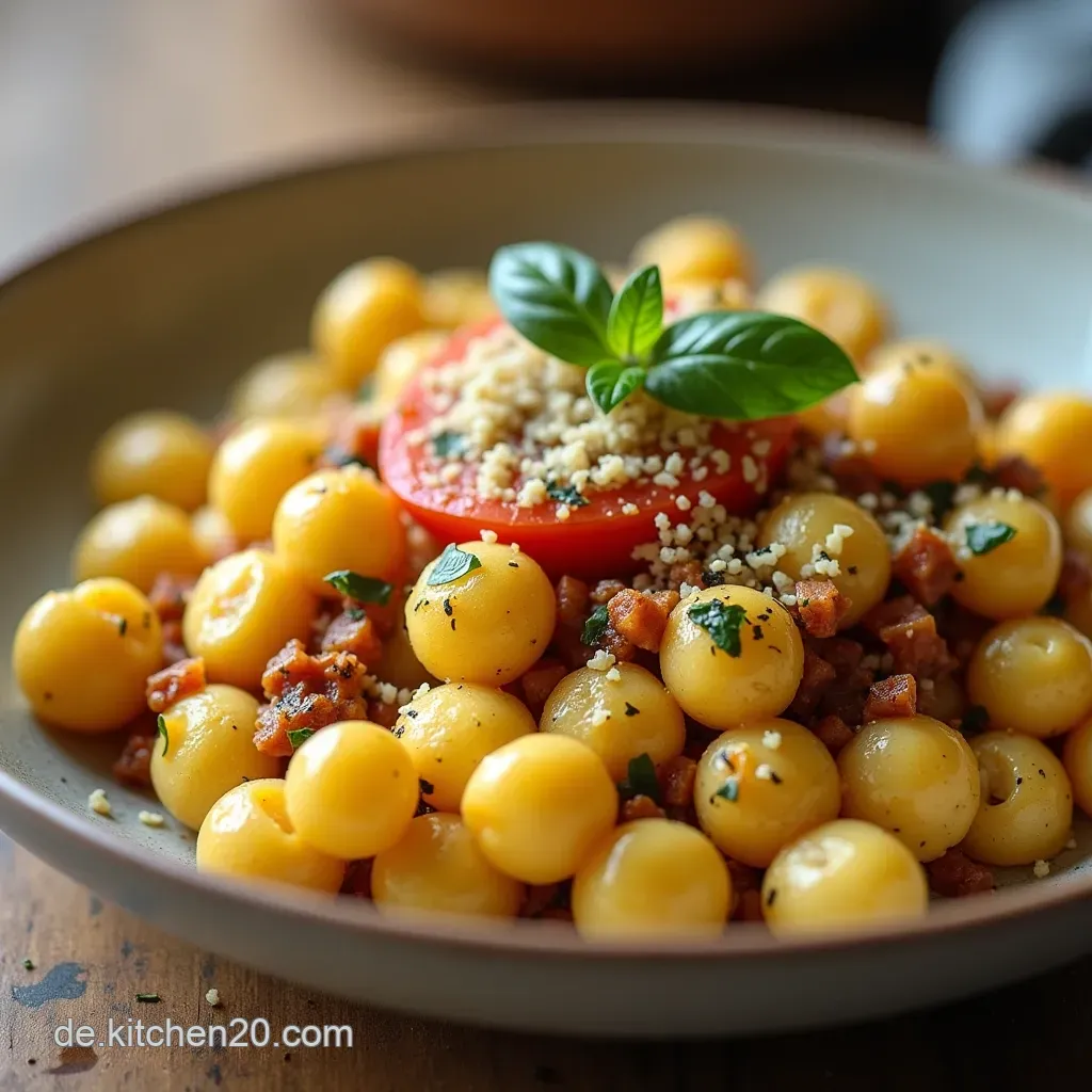 Die kleinen Kartoffelklößchen nehmen die intensiven Aromen des Gemüses auf und entwickeln an ihren Außenseiten eine appetitliche, leicht karamellisierte Kruste. Dieses Spiel zwischen weichem Inneren und knusprigem Äußeren ist der Kern dieses Genusses.