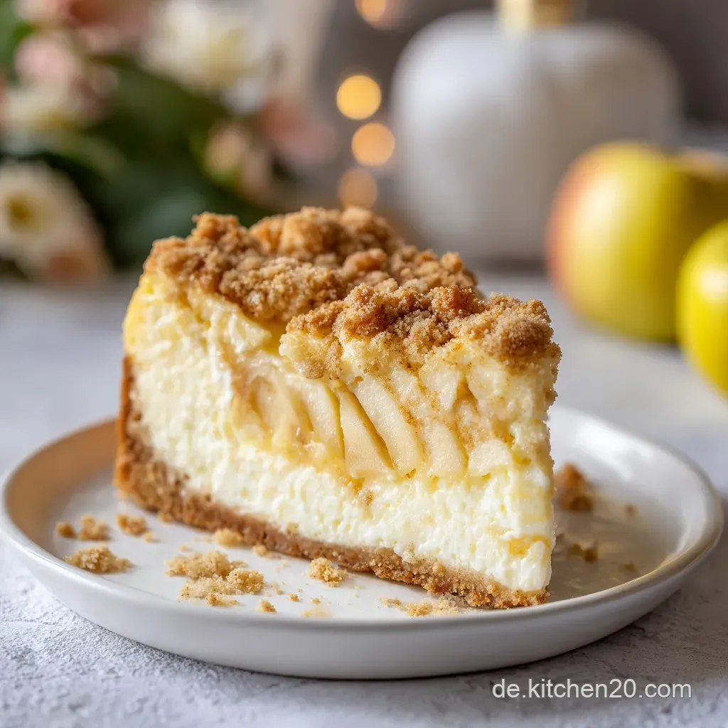 Für eine alkoholfreie, festliche Begleitung empfehle ich mein Winterlicher Apfel Eistee rezept. Die feine Apfelnote im Tee spiegelt den Geschmack des Kuchens wider, ohne ihn zu überlagern. Falls du gar keinen Boden möchtest, kannst du die Quarkmasse auch direkt in eine gefettete Auflaufform füllen und die Äpfel einfach unterheben. Die Backzeit verkürzt sich dann meist um etwa 10 Minuten.