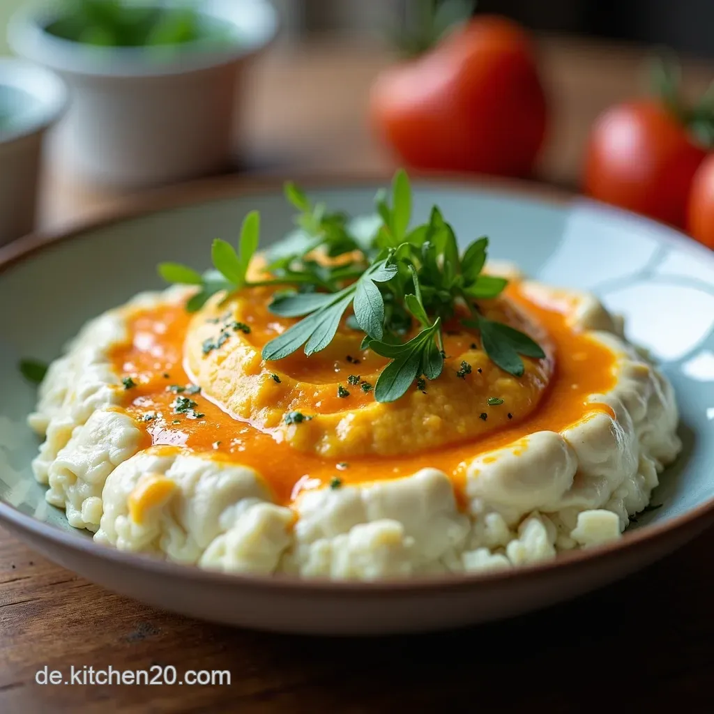 - Joghurt Mischung: Den griechischen Joghurt in eine Schüssel geben und mit Olivenöl, Essig und Dill verrühren.